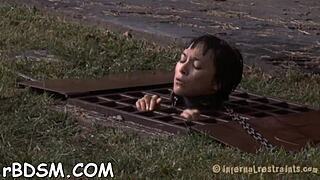 Bound brunette teen squirts in BDSM masturbation