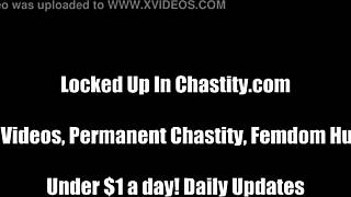 Locked in chastity by boss in femdom scene