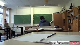 Classroom chaos! Teacher's pet sparks steamy threesome 🔥