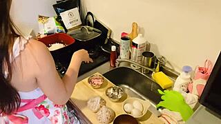 i secretly fuck sister-in-law in kitchen while wife almost catches