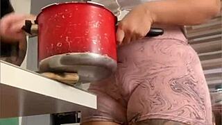 Ångande doggystyle med min kurviga styvmosters stora feta rumpa