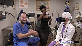 Ebony freshman Giggles moans as Doctor Tampa forces multiple orgasms using toys and cum on her pussy.