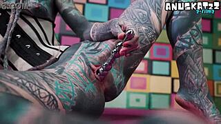 German Goth Lesbians Whip and Strap-On Fuck Shaved Pussies in BDSM Frenzy