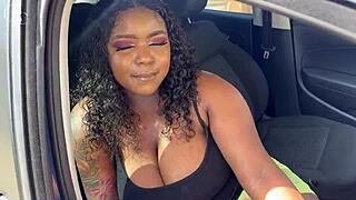 big ass ebony slut bends over tight shorts at car wash for gloryhole doggystyle pounding