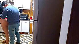 Amateur Asian BBW Housewife in Kitchen Fetish Roleplay with British Boss and Brazilian Lover. Cute Chubby Wife Moans in Rough Homemade Sex with Handcuffs and Natural Tits.
