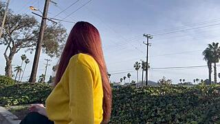 Holy Hell! Redhead MILF Masturbates in Car Before Banging Old Man!