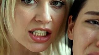 blonde lezdom mistress owns brunette slave's mouth in intense bdsm oral fetish surrender