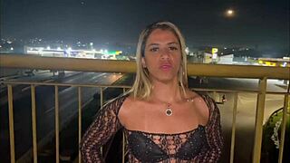 Hey hottie wife flashing pussy on street makes cyclist cum then hubby pounds her twice?