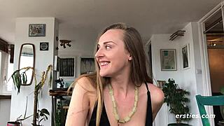 Mandy Candy's first porno in her Iowa apartment—shy blonde strips nervously. Will she impress?