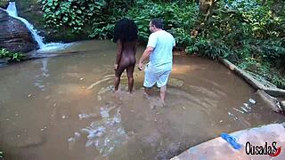 Ebony teen bruna black poses with big ass in outdoor stream photos
