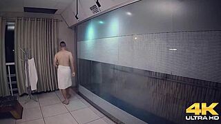 Late night fun in sauna with blowjob and pussy action in sao paulo