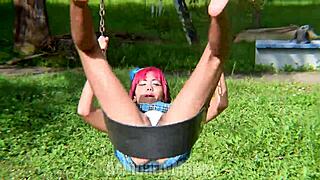 Slutty school girl flashes on swingset barefoot