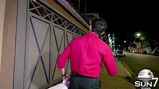 petite 18+ girl gives blowjob bent over riding big cock at stairs