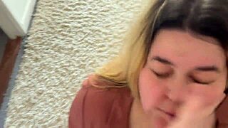 Girlfriend Drops to Knees for Deepthroat in Bedroom Striptease Test