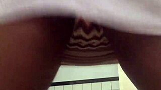 Peeking Under Her Skirt At Ebony Pussy
