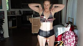 स्टेपडॉटर योगा पैंट्स में हार्ड स्क्वर्ट करती है स्टेपडैड के इंटेंस प्लेजर के लिए