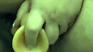 man, this chubby housewife is squirting hard on her dildo...