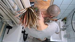 Our morning routine destroys her tight pussy in bathroom!