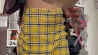 Flashing big tits in walmart store while shopping outdoors