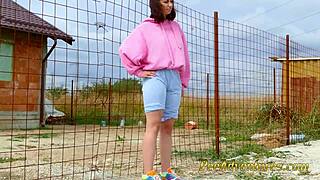 Desperate Hipster Girl Struggles to Pee Outdoors
