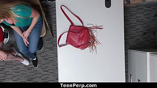 small ass shoplifter scarlett fall steals earrings, officer takes her ass and pussy one by one.