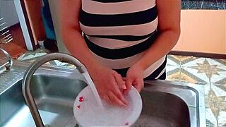 My stepsons friend came over to fuck me while i was washing dishes