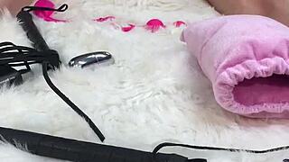 The story of fresh pink ebony pussy getting fucked hard with a fluffy dildo in hardcore action