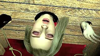Girl in wooden handcuffs takes giant ork cock deep