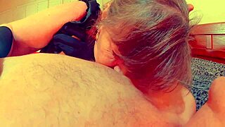 Granny Darke licks nipples and gives deepthroat blowjob