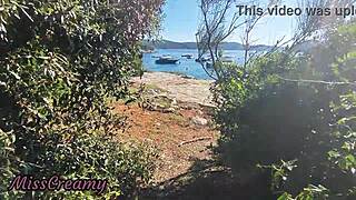 French milf MissCreamy jerks stranger on nude Greek beach.