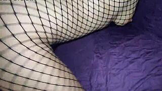 a brunette model seduces boss with perfect body in fishnets