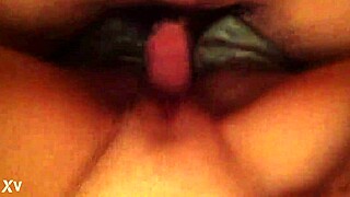 Close up of a homemade video of a brunette getting a handjob with cum shot