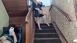 lingerie babe spying on guy wanking, so dirty