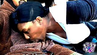 Oh, that nasty ebony freak loves sucking monster BBC in the hood!
