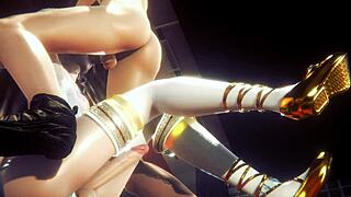 blonde overpowers brunette in wild 3d futa clash