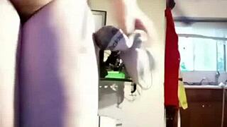 i'm scrubbing the bathroom with my huge natural tits