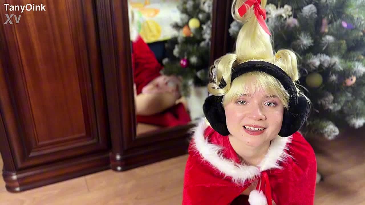 early christmas gift babe in santa hat gives best deepthroat blowjob and facial cumshot