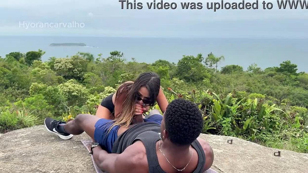 Plavuša domaćica vara sa velikim crnim kurcem javno