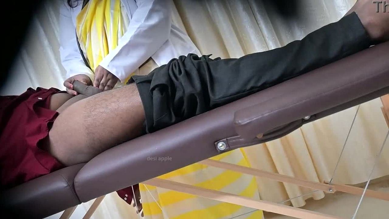 how does shy teen nurse handle big cock arousal checkup doc?